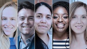 Science News announces its Scientists to Watch 2025. From left to right, Adeene Denton, Southwest Research Institute; Alex Lupsasca, Vanderbilt University and OpenAI; M. Catalina “Cat” Camacho, Washington University in St. Louis School of Medicine; Erika Moore, University of Maryland; Marianne Falardeau, Université TÉLUQ